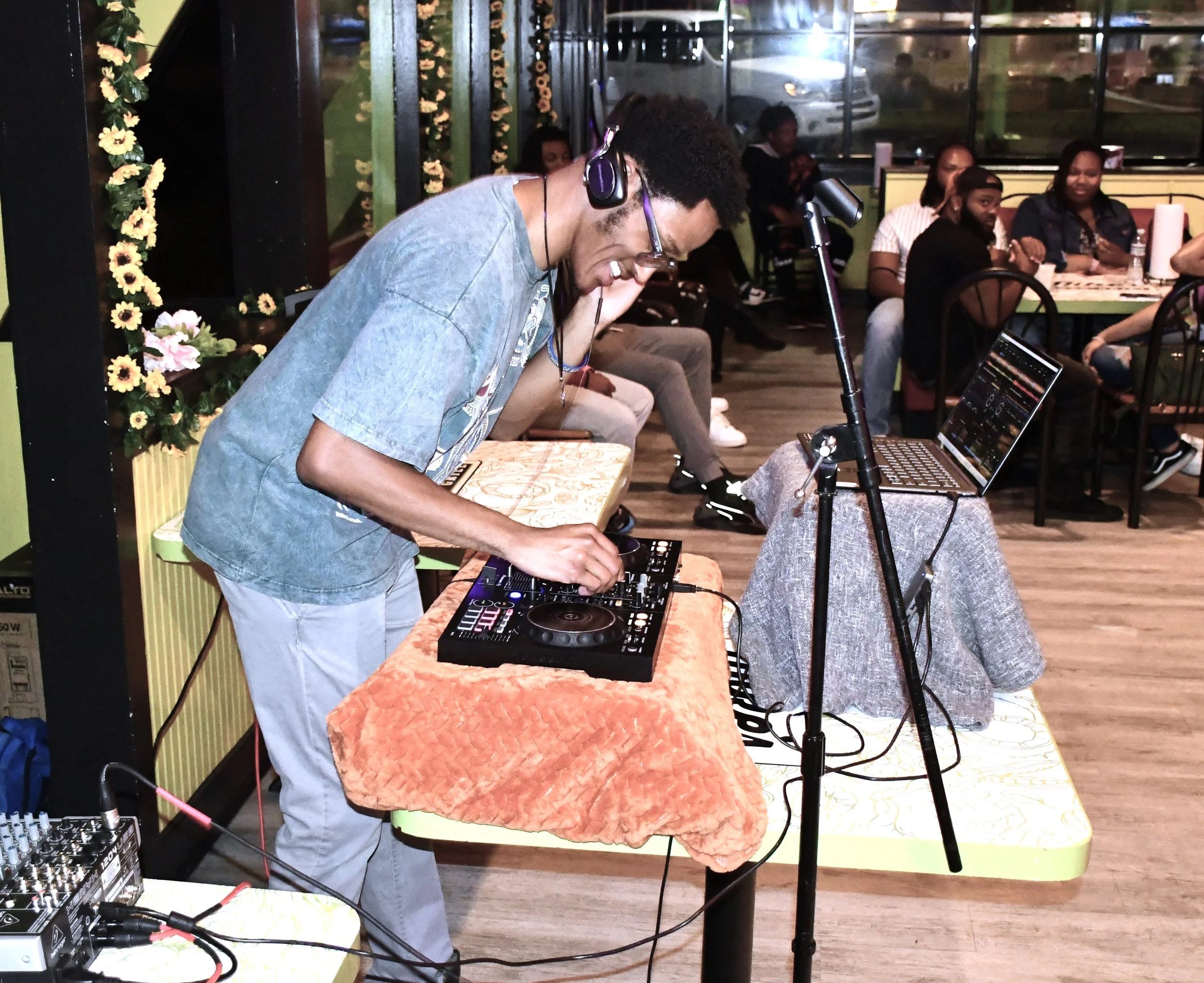 From rocking a DJ/MC duo set at Mike's Vegan in Greensboro, to navigating growth and grit at The Fruit's DJ Battle, to curating intimate gatherings like “Just Another Kickback”, DJ SOS brings intention, soul, and community wherever he spins. His performances are equal parts energy and intimacy—designed for joy, healing, and uninhibited self-expression.
